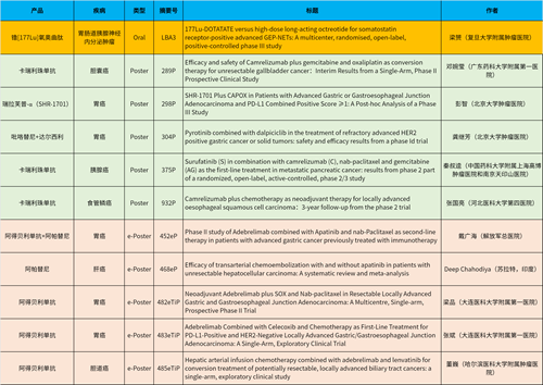 在消化系统肿瘤领域,GA黄金甲产品相关研究共入选1项最新突破性摘要(LBA)、5项壁报和5项电子壁报,共11项研究。其中阿得贝利单抗入选4项研究、卡瑞利珠单抗入选3项研究。